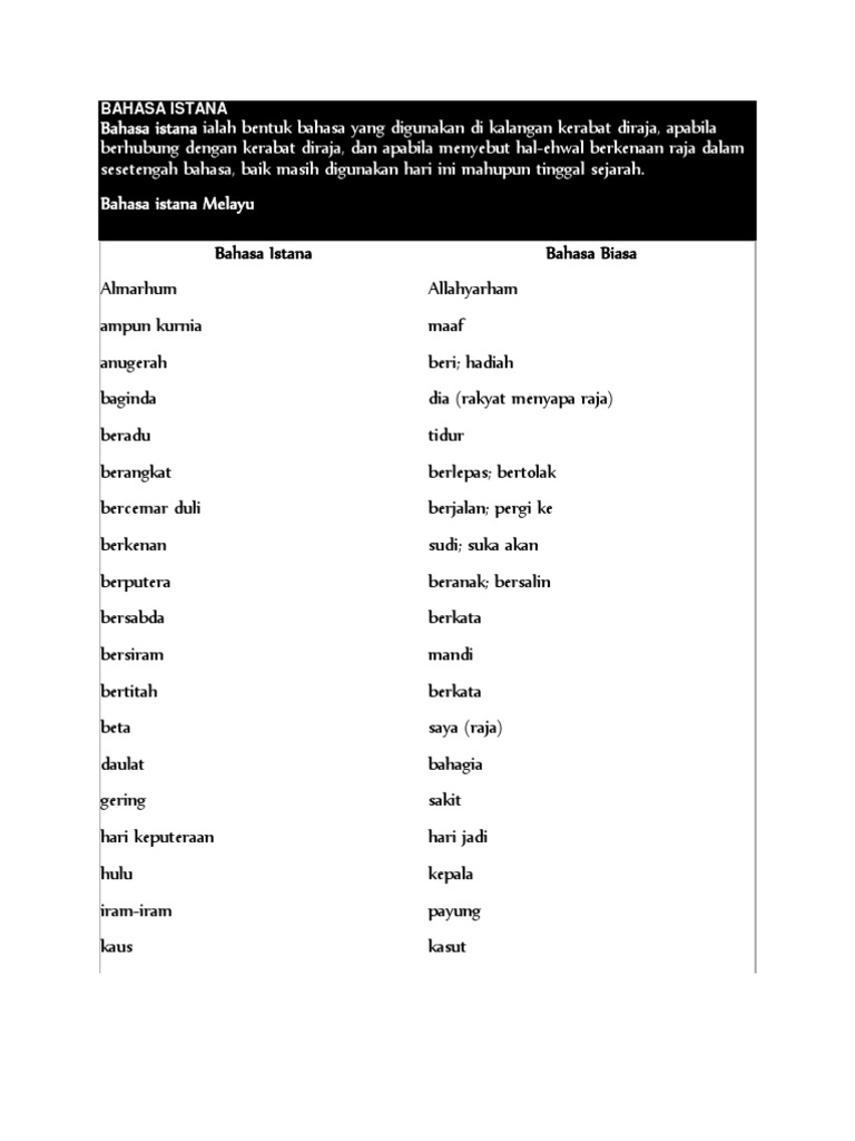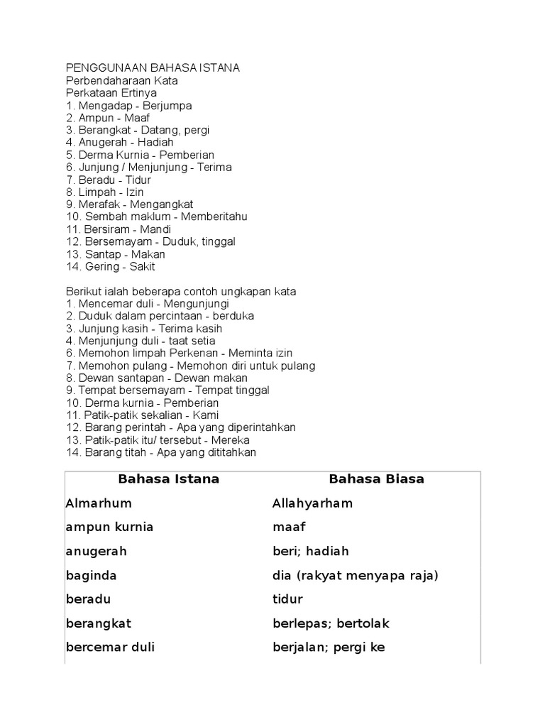 Contoh Bahasa Istana Senarai Maksud Ayat Terbaik Pt3
